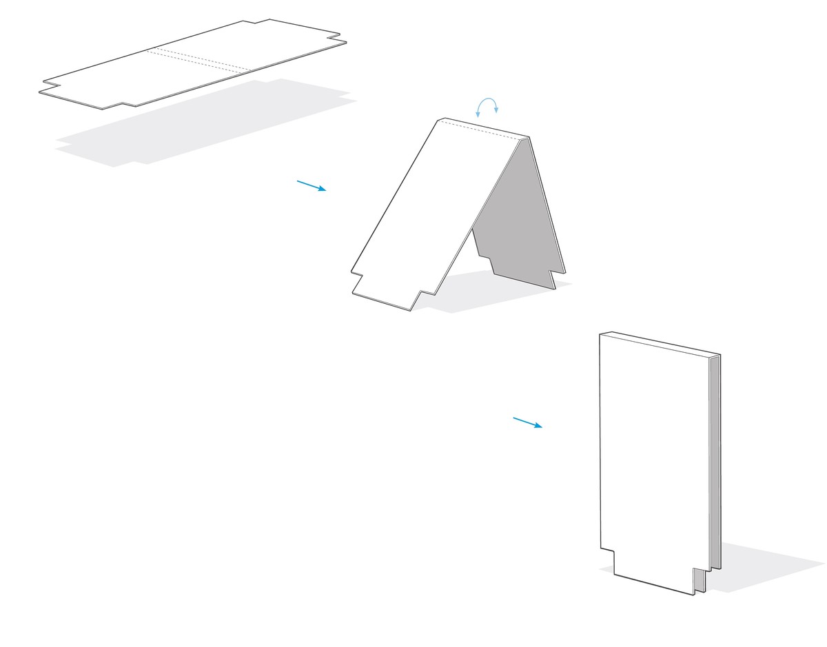 Die einzelnen Kennzeichnungselemente werden aus einer Metallplatte als Abwicklung aus gelasert und durch Abkantung zu einem Körper gefaltet.