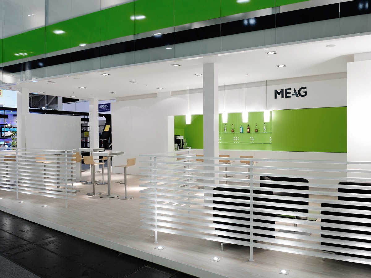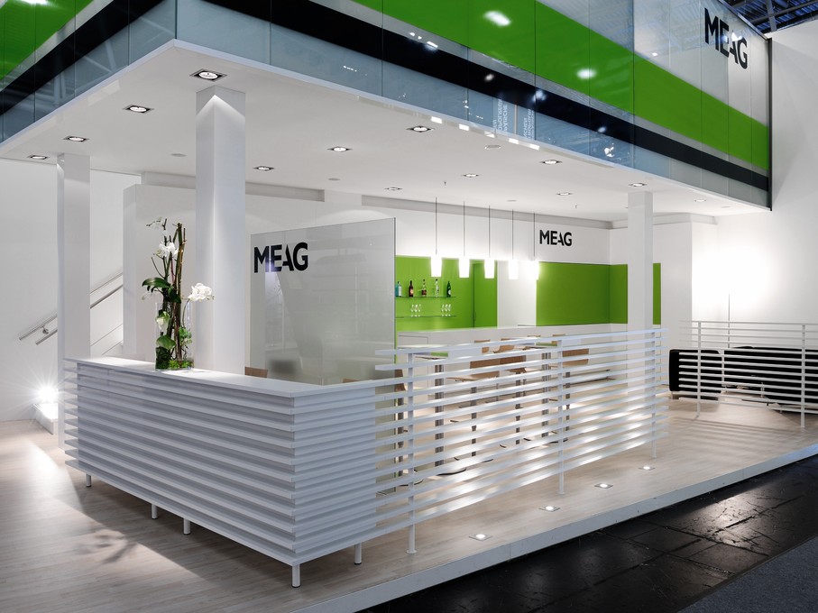 Das MEAG Erscheinungsbild, Messestand-Design, sowie der Internetauftritt sind formal aufeinander abgestimmt und erscheinen wie aus einem Guss.