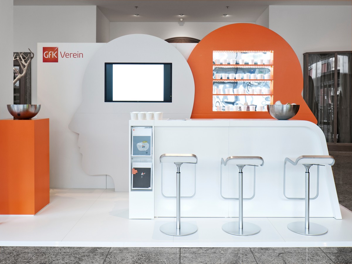 Thema des Messestandes ist „Brain Food“ und was die Ernährung positiv für Konsumenten bewirken kann. Im Mittelpunkt des Standkonzepts stehen zwei Kopfsilhouetten, die als